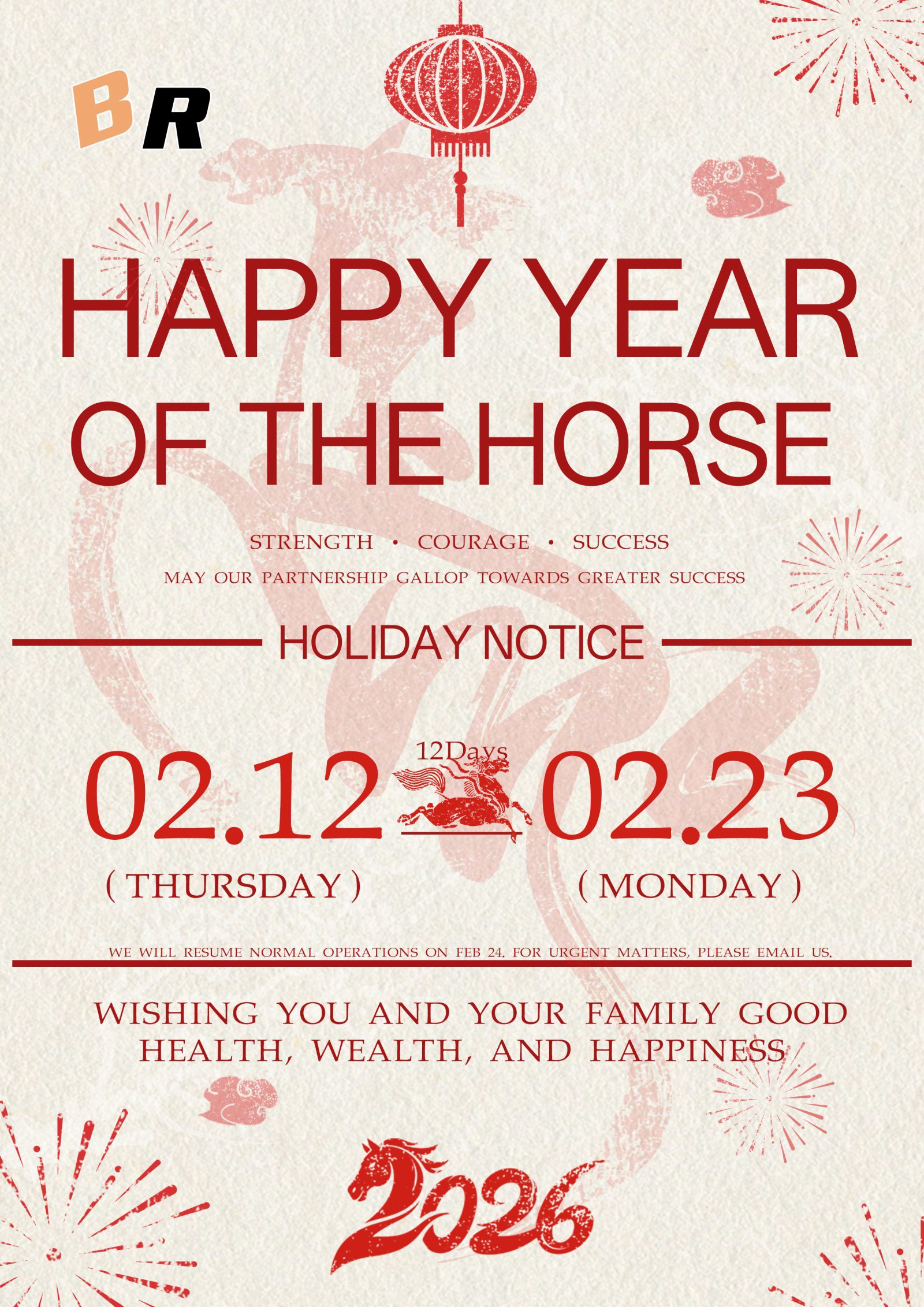 Kami mendoakan anda Tahun Kuda yang makmur dan berjaya.